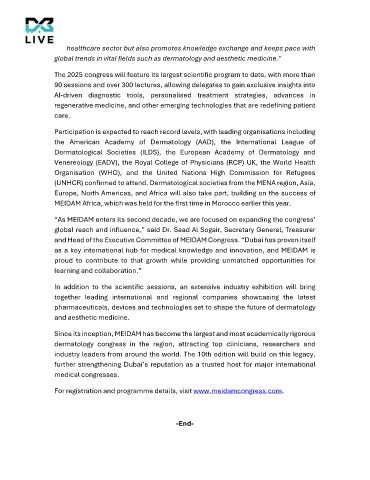 global trends in vital fields such as dermatology and aesthetic medicine."