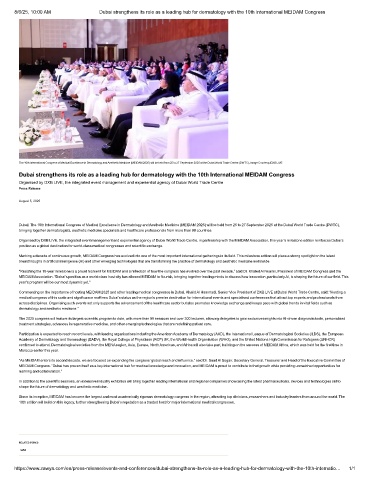 8/6/25, 10:00 AM Dubai strengthens its role as a leading hub for dermatology with the 10th International MEIDAM Congress