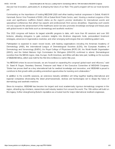 8/6/25, 10:01 AM           Dubai Strengthens Its Role as a Leading Hub for Dermatology with the 10th International MEIDAM Congress