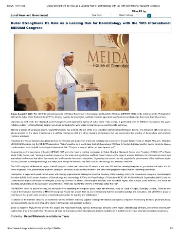 8/6/25, 10:01 AM           Dubai Strengthens Its Role as a Leading Hub for Dermatology with the 10th International MEIDAM Congress