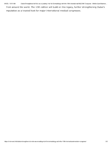 8/6/25, 10:01 AM  Dubai Strengthens Its Role as a Leading Hub for Dermatology with the 10th International MEIDAM Congress - Middle East Busines…