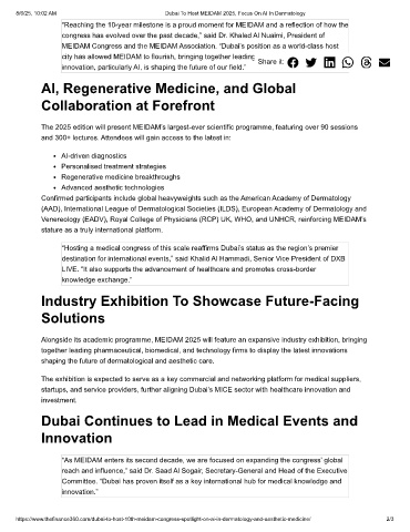 https://www.thefinance360.com/dubai-to-host-10th-meidam-congress-spotlight-on-ai-in-dermatology-and-aesthetic-medicine/  2/3
