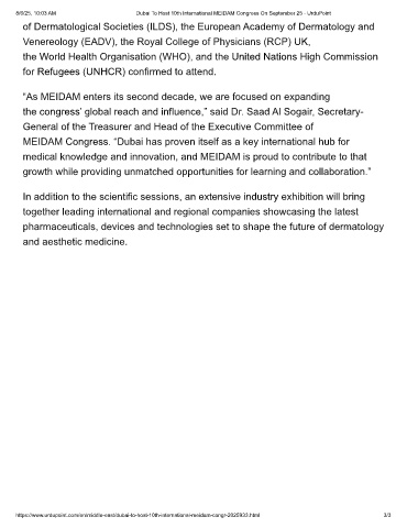 8/6/25, 10:03 AM Dubai To Host 10th International MEIDAM Congress On September 25 - UrduPoint