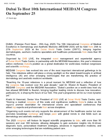 https://www.pakistanpoint.com/en/story/2025933/dubai-to-host-10th-international-meidam-congress-on-sep.html 1/2