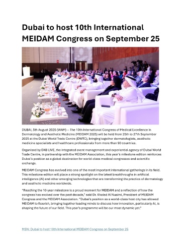 MSN: Dubai to host 10th International MEIDAM Congress on September 25