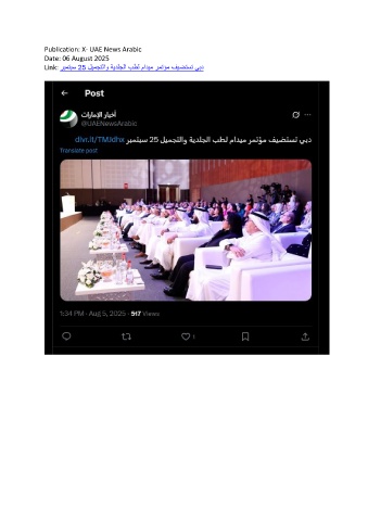 Publication: X- UAE News Arabic Date: 06 August 2025 Link: رﺑﻣﺗﺑﺳ 25 لﯾﻣﺟﺗﻟاو ﺔﯾدﻠﺟﻟا بطﻟ مادﯾﻣ رﻣﺗؤﻣ فﯾﺿﺗﺳﺗ ﻲﺑد