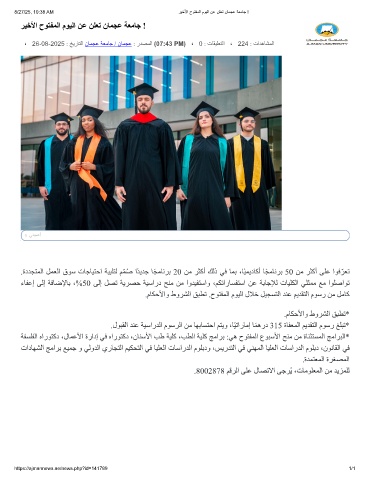 ، 26-08-2025 : ﺦﯾرﺎﺘﻟا نﺎﻤﺠﻋ ﺔﻌﻣﺎﺟ / نﺎﻤﺠﻋ : رﺪﺼﻤﻟا (07:43 PM) ، 0 : تﺎﻘﯿﻠﻌﺘﻟا ، 224 : تاﺪھﺎﺸﻤﻟا