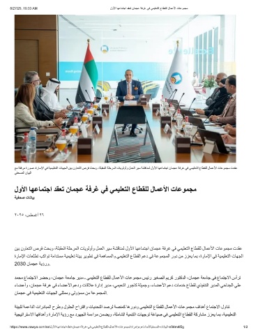 ﻊﻣ ﺔﻘﻓرﻣ ةروﺻ ،ةرﺎﻣﻹا ﻲﻓ ﺔﯾﻣﯾﻠﻌﺗﻟا تﺎﮭﺟﻟا نﯾﺑ نوﺎﻌﺗﻟا صرﻓ ثﺣﺑو ،ﺔﻠﺑﻘﻣﻟا ﺔﻠﺣرﻣﻟا تﺎﯾوﻟوأو لﻣﻌﻟا رﯾﺳ ﺔﺷﻗﺎﻧﻣﻟ لوﻷا ﺎﮭﻋﺎﻣﺗﺟا نﺎﻣﺟﻋ ﺔﻓرﻏ ﻲﻓ ﻲﻣﯾﻠﻌﺗﻟا عﺎطﻘﻠﻟ لﺎﻣﻋﻷا تﺎﻋوﻣﺟﻣ تدﻘﻋ
