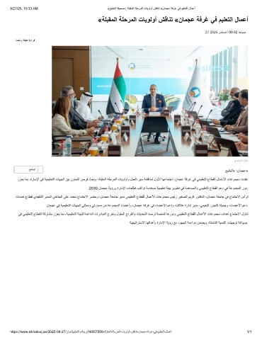 ززﻌﯾ ﺎﻣﺑ ،ةرﺎﻣﻹا ﻲﻓ ﺔﯾﻣﯾﻠﻌﺗﻟا تﺎﮭﺟﻟا نﯾﺑ نوﺎﻌﺗﻟا صرﻓ ثﺣﺑو ،ﺔﻠﺑﻘﻣﻟا ﺔﻠﺣرﻣﻟا تﺎﯾوﻟوأو لﻣﻌﻟا رﯾﺳ ﺔﺷﻗﺎﻧﻣﻟ لوﻷا ﺎﮭﻋﺎﻣﺗﺟا ،نﺎﻣﺟﻋ ﺔﻓرﻏ ﻲﻓ ﻲﻣﯾﻠﻌﺗﻟا عﺎطﻘﻠﻟ لﺎﻣﻋﻷا تﺎﻋوﻣﺟﻣ تدﻘﻋ