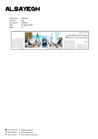 Publication: Al Etihad Country: UAE Circulation: 109,640 Date: 27 August 2025 Page: 14