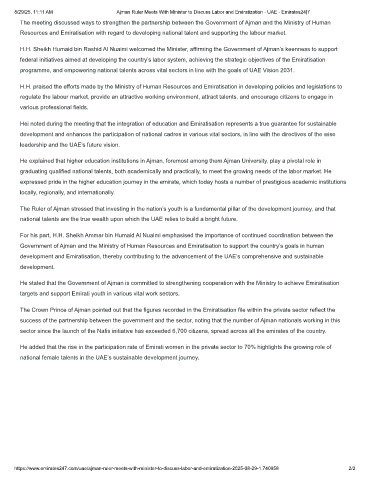 https://www.emirates247.com/uae/ajman-ruler-meets-with-minister-to-discuss-labor-and-emiratization-2025-08-29-1.740958 2/2