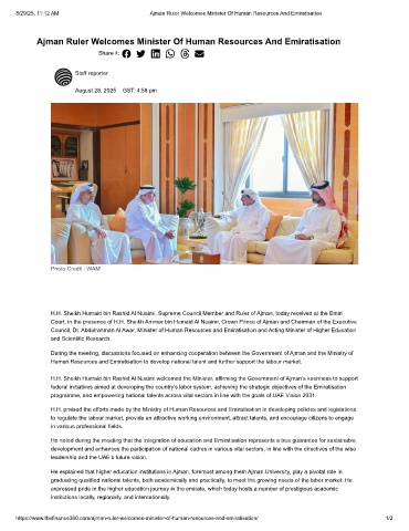 8/29/25, 11:12 AM Ajman Ruler Welcomes Minister Of Human Resources And Emiratisation