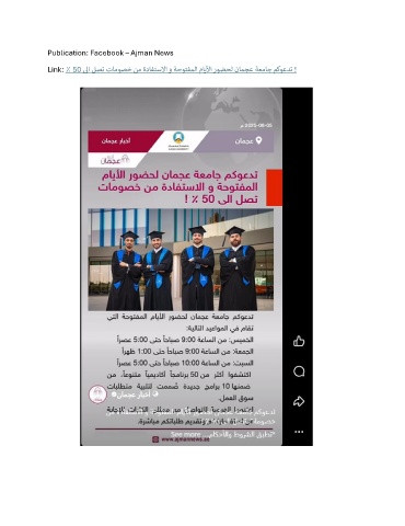 Publication: Facebook – Ajman News Link: ٪ 50لىالصتتاموصخنمةدافتسلااوةحوتفملامايلأاروضحلنامجعةعماجمكوعدت !