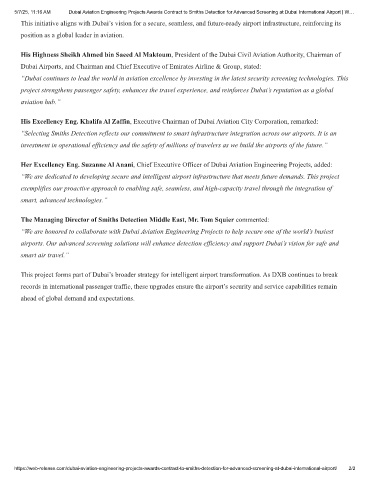 5/7/25, 11:16 AM Dubai Aviation Engineering Projects Awards Contract to Smiths Detection for Advanced Screening at Dubai International Airport | W…