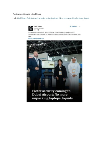 Publication: LinkedIn – Gulf News Link: Gulf News: Dubai Airport security just got quicker: No more unpacking laptops, liquids