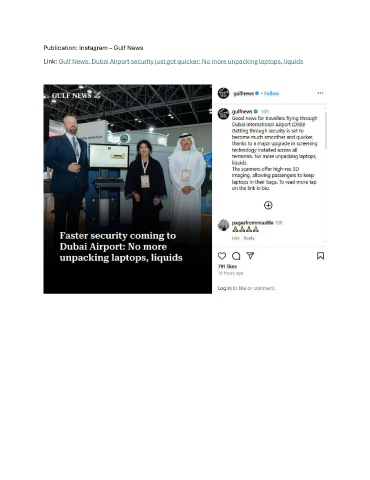 Publication: Instagram – Gulf News Link: Gulf News: Dubai Airport security just got quicker: No more unpacking laptops, liquids