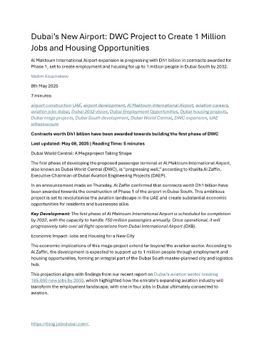 Dubai’s New Airport: DWC Project to Create 1 Million
