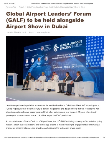 https://www.aeromagasia.com/2025/05/04/global-airport-leaders-forum-galf-to-be-held-alongside-airport-show-in-dubai/#:~:text=Aviation experts and s… 1/2