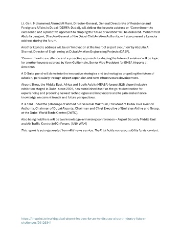 Abdulla Lengawi, Director-General of the Dubai Civil Aviation Authority, will also present a keynote
