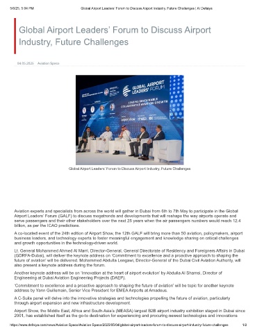 5/6/25, 5:04 PM Global Airport Leaders’ Forum to Discuss Airport Industry, Future Challenges | Al Defaiya