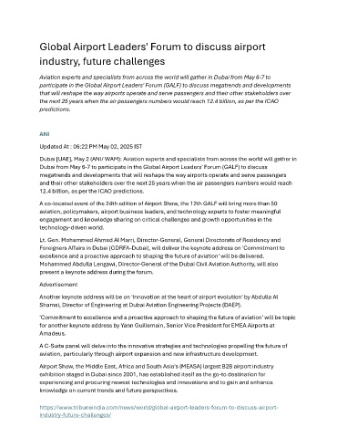 Dubai from May 6-7 to participate in the Global Airport Leaders' Forum (GALF) to discuss