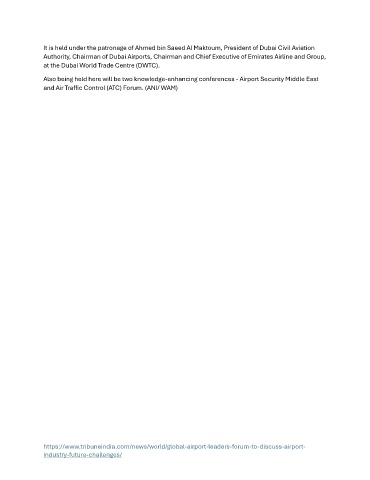 It is held under the patronage of Ahmed bin Saeed Al Maktoum, President of Dubai Civil Aviation