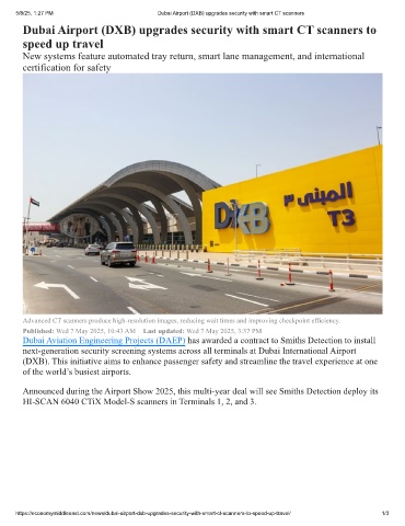 5/8/25, 1:27 PM                            Dubai Airport (DXB) upgrades security with smart CT scanners