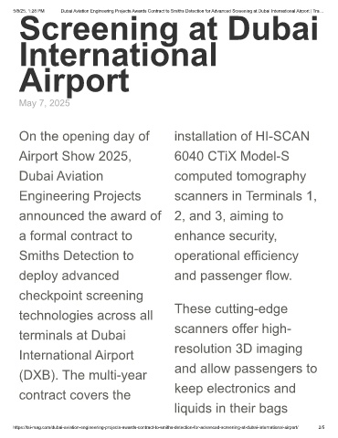 5/8/25, 1:28 PM Dubai Aviation Engineering Projects Awards Contract to Smiths Detection for Advanced Screening at Dubai International Airport | Tra…