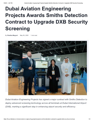 5/8/25, 1:28 PM Dubai Aviation Engineering Projects Awards Smiths Detection Contract to Upgrade DXB Security Screening