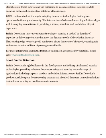 5/8/25, 1:32 PM  Smiths Detection Awarded Contract by DAEP to Provide Cutting-Edge Checkpoint Screening Technology for Dubai International Airp…
