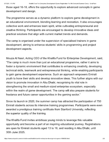 6/13/25, 1:15 PM Khalifa Fund For Enterprise Development Opens Registration For 8th Venturist Summer Camp - UrduPoint