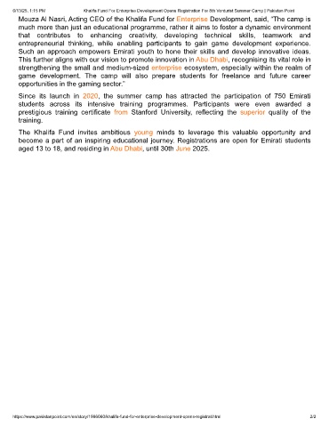 6/13/25, 1:15 PM Khalifa Fund For Enterprise Development Opens Registration For 8th Venturist Summer Camp | Pakistan Point