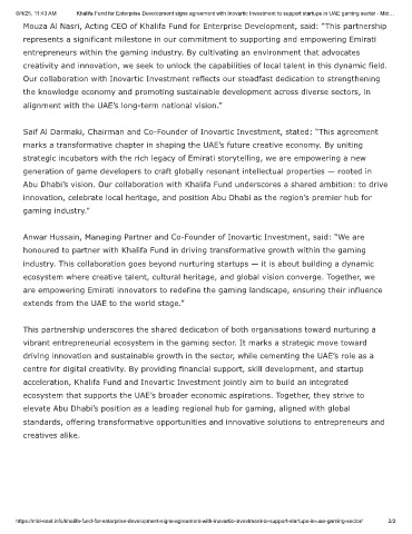 6/4/25, 11:43 AM Khalifa Fund for Enterprise Development signs agreement with Inovartic Investment to support startups in UAE gaming sector - Mid…