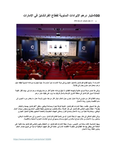 رايلم 100 ةيونسلا هتاداريإ تزواجت ثيح ،ًاعراستم ًاومن تاراملإا ةلود يف )يراجتلا زايتملاا( زياشنارفلا عاطق دهشي 7 - تاراملاا
