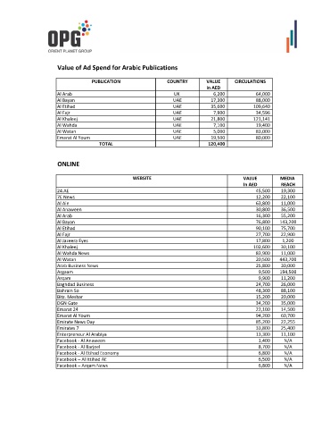 Value of Ad Spend for Arabic Publications