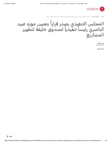 https://www.mediaoffice.abudhabi/ar/government-affairs/executive-council-issues-resolution-appointing-mouza-obaid-al-nasri-as-ceo-of-khalifa-fund-for… 1/4