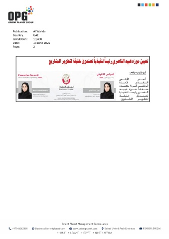 Publication: Al Wahda Country: UAE Circulation: 19,400 Date: 13 June 2025 Page: 2