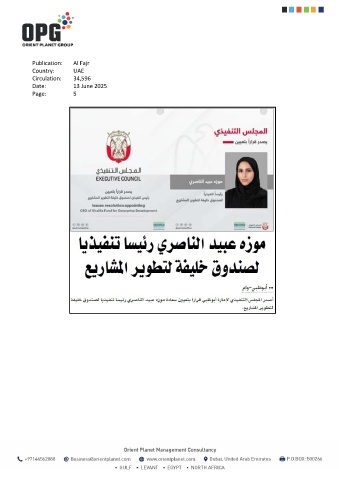 Publication: Al Fajr Country: UAE Circulation: 34,596 Date: 13 June 2025 Page: 5