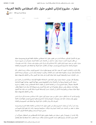 «ﺔﻴﺑﺮﻌﻟا ﺔﻐﻠﻟﺎﺑ ﻲﻋﺎﻨﻄﺻا ءﺎﻛذ لﻮﻠﺣ ﺮﻳﻮﻄﺘﻟ ﻲﺗارﺎﻣإ عوﺮﺸﻣ ..«رﺎﻴﻨﺳ
