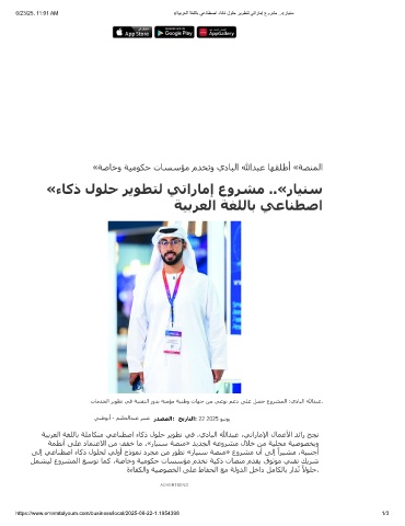 6/23/25, 11:01 AM «ﺔﯾﺑرﻌﻟا ﺔﻐﻠﻟﺎﺑ ﻲﻋﺎﻧطﺻا ءﺎﻛذ لوﻠﺣ رﯾوطﺗﻟ ﻲﺗارﺎﻣإ عورﺷﻣ ..«رﺎﯾﻧﺳ