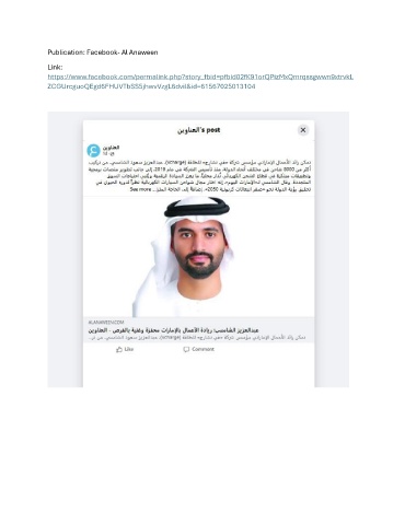 Publication: Facebook- Al Anaween Link: https://www.facebook.com/permalink.php?story_fbid=pfbid02fK91orQPizMxQmrqssgwwn9xtrvkL ZCGUrcguoQEgd6FHUVTbSS5jhwvVzgL6dvil&id=61567025013104