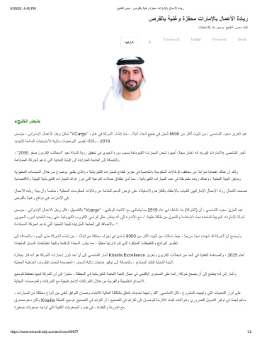 سﺳؤﻣ ، ﻲﺗارﺎﻣﻹا لﺎﻣﻋﻷا لﺟر لﺎﻗ ، لﯾﺻﻔﺗﻟﺎﺑ “Vcarge” ، ﻲﻧطوﻟا هﺎﺟﺗﻻا ﻊﻣ ﻰﺷﺎﻣﺗﯾ ﺎﻣﺑ 2019 مﺎﻋ ﻲﻓ ﮫطﺎﺷﻧ أدﺑ (ﺔﻛرﺷﻟا) نأ ، ﻲﺳﻣﺎﺷﻟا دوﻌﺳ زﯾزﻌﻟا دﺑﻋ