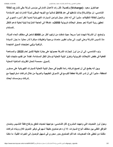ﺔﻗﺎطﻠﻟ «جرﺎﺷﺗ ﻲﻓ» ﺔﻛرﺷ سﺳؤﻣ ﻲﺗارﺎﻣﻹا لﺎﻣﻋﻷا دﺋار لﺎﻗ ،ًﻼﯾﺻﻔﺗو (Vcharge)، دوﻌﺳ زﯾزﻌﻟادﺑﻋ