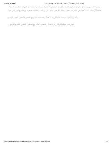 ﻊﺳﻮﺘﻟاو ﻮﻤﻨﻟا ﻖﯿﻘﺤﺘﻟ ةﺮﯿﻐﺼﻟا ﻊﯾرﺎﺸﻤﻟا بﺎﺤﺻأو لﺎﻤﻋﻷا داوﺮﻟ ﺔﯿﻟﺎﺜﻣ ﺔﮭﺟو تارﺎﻣﻹا نأ ﺪﻛأو.
