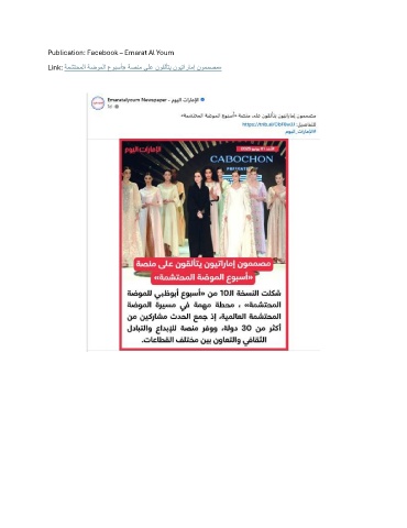 Publication: Facebook – Emarat Al Youm Link: ةمشتحملا ةضوملا عوبسأ« ةصنم ىلع نوقلأتي نويتارامإ نوممصم»
