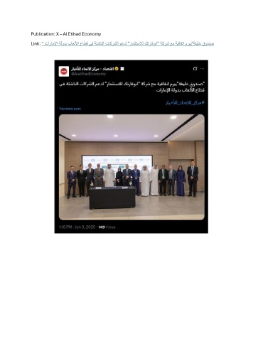 Publication: X – Al Etihad Economy Link: " تاراملإا ةلودب باعللأا عاطق يف ةئشانلا تاكرشلا معدل "رامثتسلال كترافونا" ةكرش عم ةيقافتا مربي"ةفيلخ قودنص