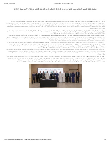 ﻰﻟإ ﺎﮭﻟﻼﺧ نﻣ ﻰﻌﺳﻧ ثﯾﺣ ،بﺎﻌﻟﻷا عﺎطﻗ ﻲﻓ نﯾﯾﺗارﺎﻣﻹا لﺎﻣﻋﻷا داور نﯾﻛﻣﺗو مﻋد ةرﯾﺳﻣ ﻲﻓ ﺔﯾﻋوﻧ ًةوطﺧ ﺔﯾﻗﺎﻔﺗﻻا هذھ لﺛﻣﺗ " :ﻊﯾرﺎﺷﻣﻟا رﯾوطﺗﻟ ﺔﻔﯾﻠﺧ قودﻧﺻﻟ ﺔﺑﺎﻧﻹﺎﺑ يذﯾﻔﻧﺗﻟا سﯾﺋرﻟا ،يرﺻﺎﻧﻟا ةزوﻣ تﻟﺎﻗو