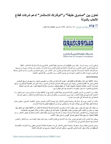 ةيقافتا ،رامثتسلال كترافونا ةكرشو عيراشملا ريوطتل ةفيلخ قودنص مربأ )ء 2025 وينوي 03 ۔ كروتن تنيوب ودرأ ( يبظوبأ