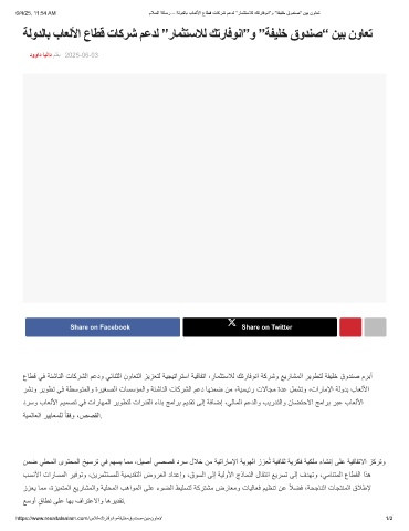 6/4/25, 11:54 AM مﻼﺳﻟا ﺔﻟﺎﺳر – ﺔﻟودﻟﺎﺑ بﺎﻌﻟﻷا عﺎطﻗ تﺎﻛرﺷ مﻋدﻟ ”رﺎﻣﺛﺗﺳﻼﻟ كﺗرﺎﻓوﻧا”و ”ﺔﻔﯾﻠﺧ قودﻧﺻ“ نﯾﺑ نوﺎﻌﺗ