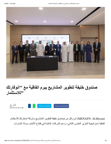 رﺎﻤﺜﺘﺳﻼﻟ ﻚﺗرﺎﻓﻮﻧا ﺔﻛﺮﺷو ﻊﯾرﺎﺸﻤﻟا ﺮﯾﻮﻄﺘﻟ ﺔﻔﯿﻠﺧ قوﺪﻨﺻ ﻦﻣ ﻞﻛ مﺮﺑأ (MENAFN- Al-Bayan)